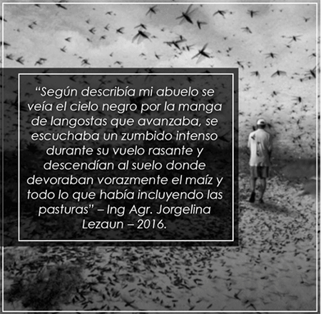 Años después desde principios del Siglo XX -tal como relataba mi abuelo Francisco, siguiente generación familiar establecida en nuestra pampa argentina- debían afrontar la presencia de plagas voraces con grave impacto económico y aun así entendían la importancia de capacitarse y sostener la vigencia del Programa Nacional de Monitoreo de la Plaga de Schistocerca lancellata -langosta- como forma preventiva de protección agrícola parte fundamental de los programas de Manejo Integrado de Plagas.